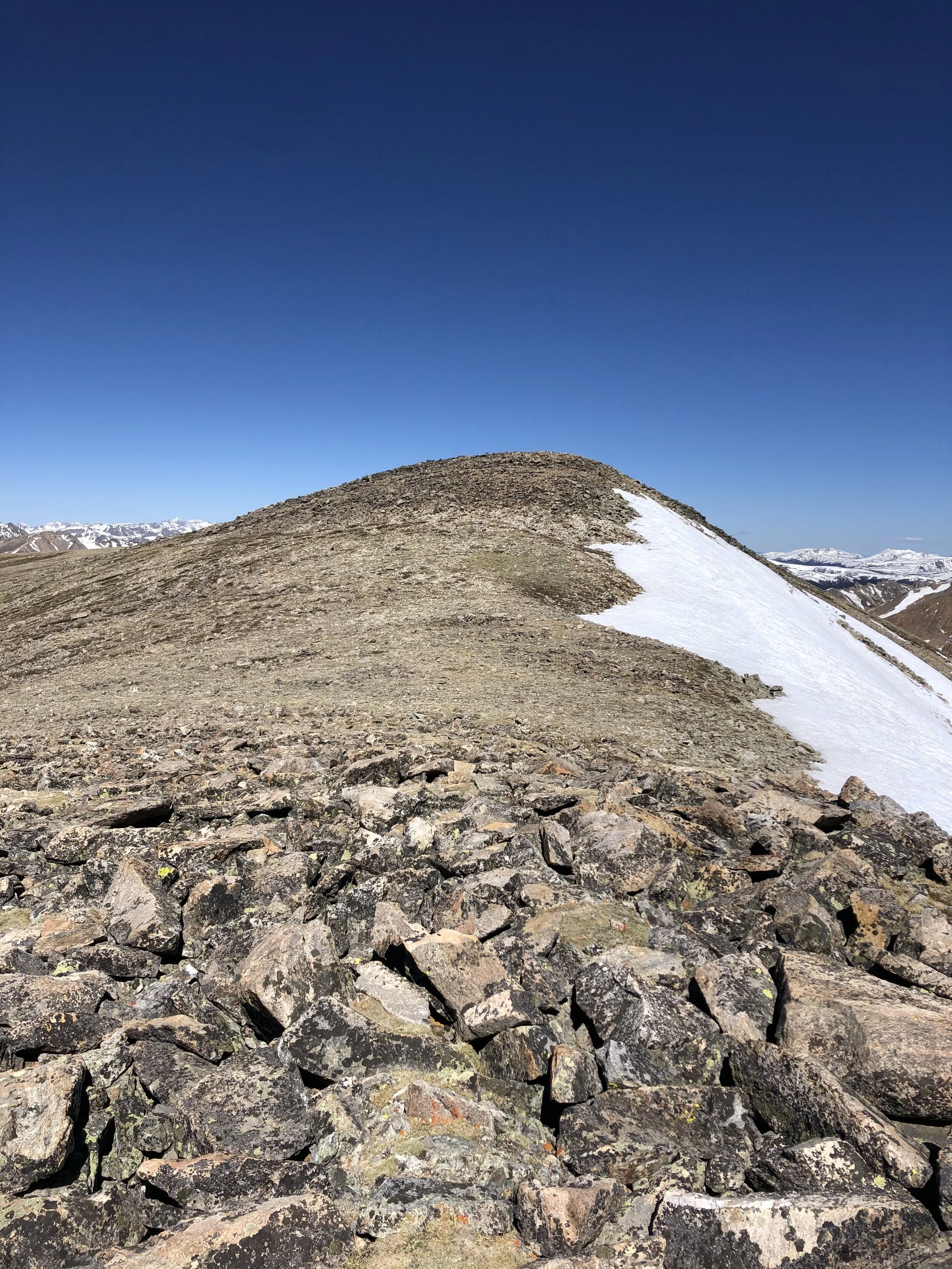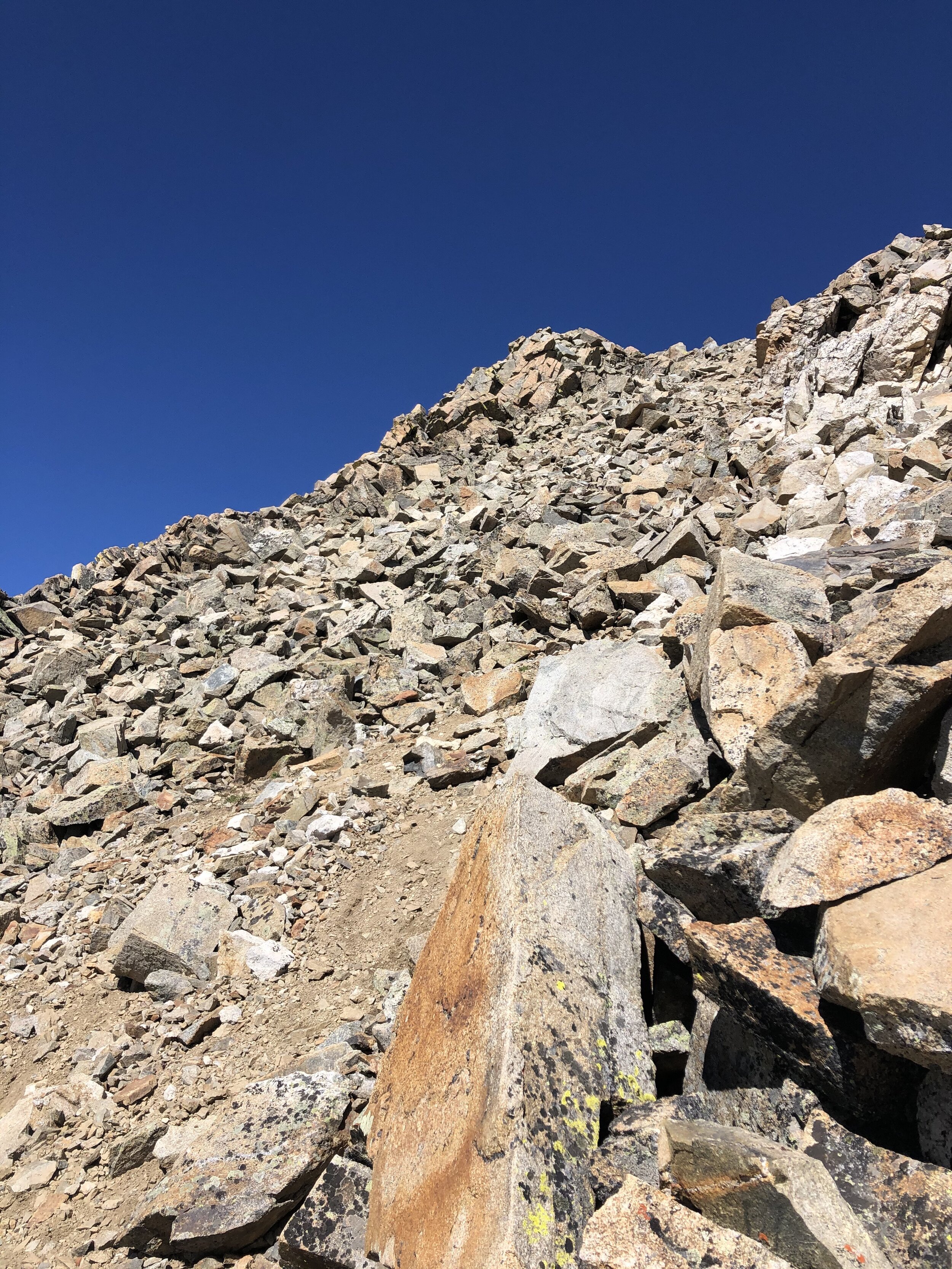 Around 13,000’, I began up the crux of the hike. From now until the summit was where all the fun was. This portion made this hike the most exciting and fun hike that I’ve done in the 3 weeks that I’ve been in Colorado. I have tons of pictures below to show all of the awesomeness. This portion made me realize why its considered a “Difficult Class 2” hike.