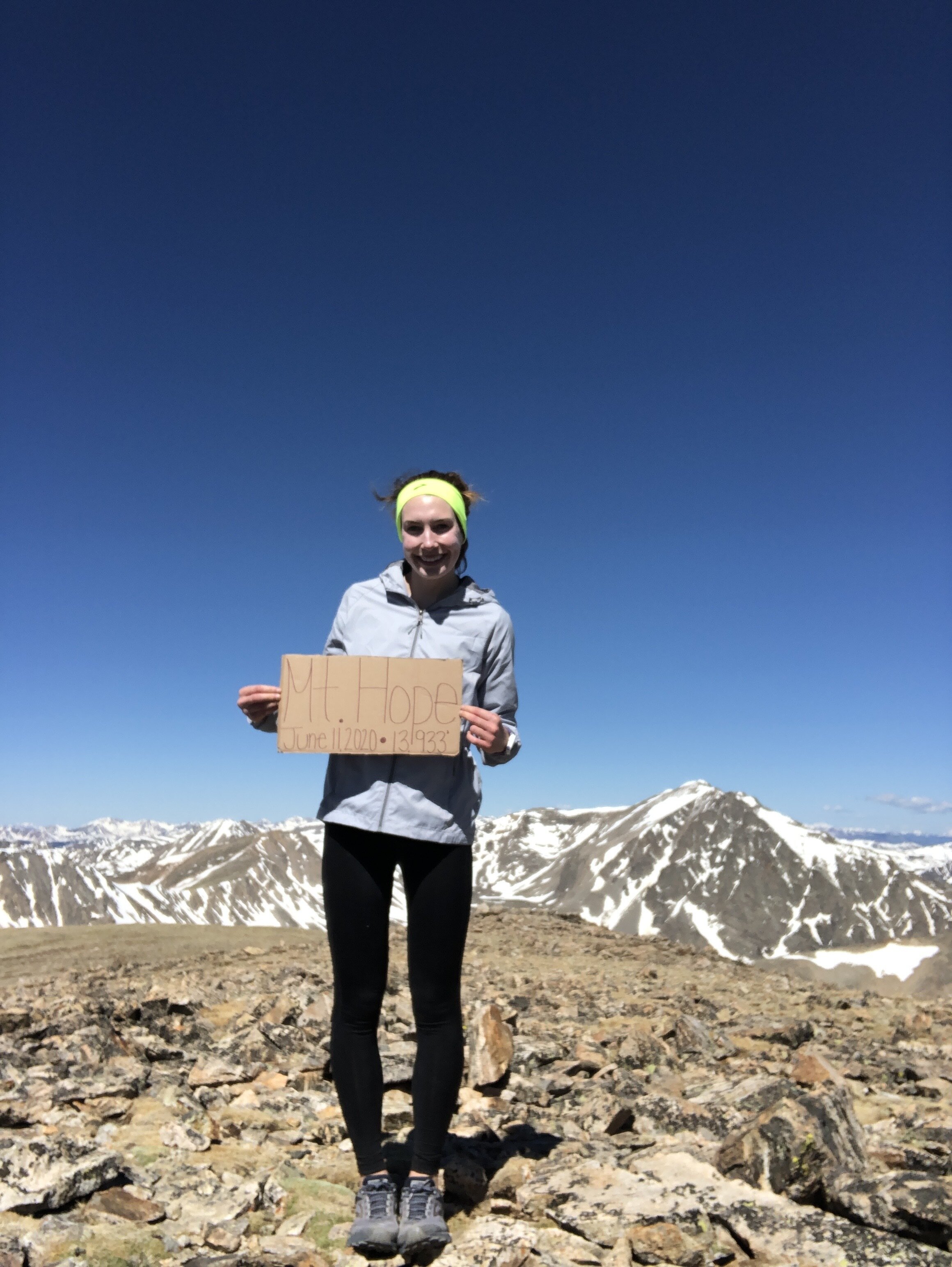 1 hour and 24 minutes & 2.6 miles later, I reached Hope Pass—elevation 12,550’. Hope Pass had a nice marker (second picture), and some good views (fourth picture is Mt. Hope in the distance)!